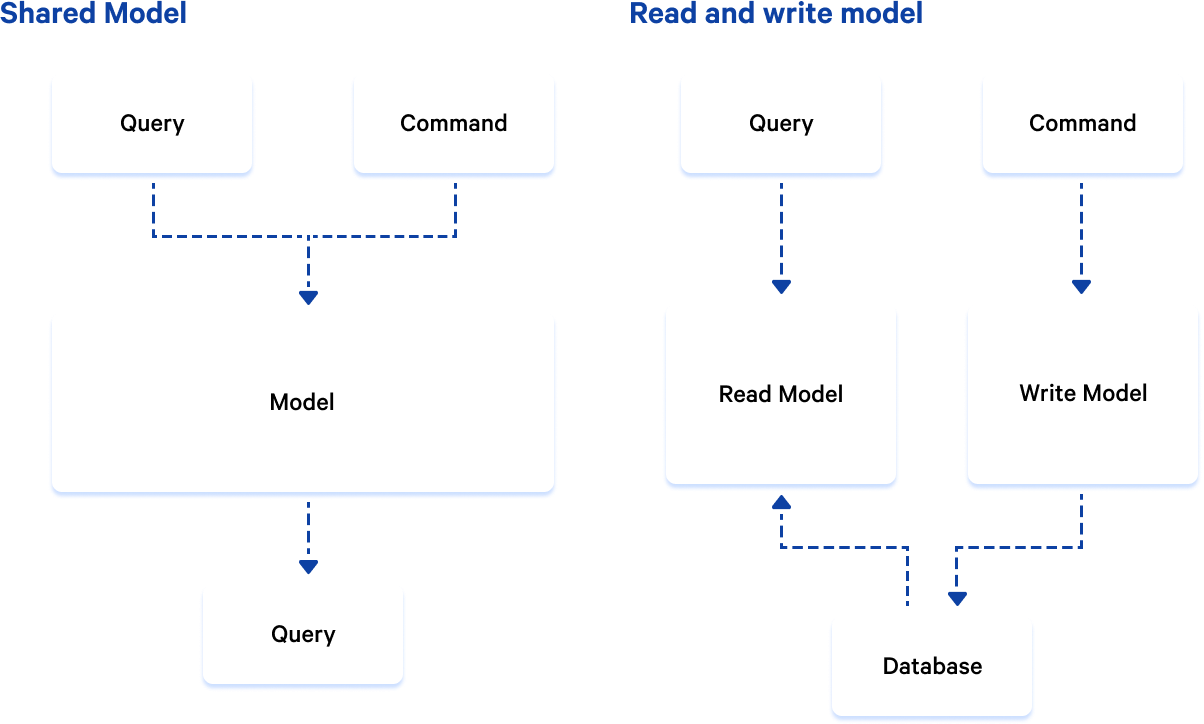 As you can see in the picture above, the query and the command have their own separate models for reading and writing, where the command saves data to the appropriate tables that persuade our business, in addition, an event is usually run or the commands are simply also persuaded data as a read model.